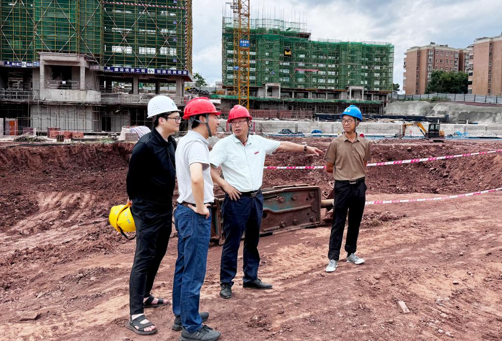 9月6日上午,学校党委委员、副校长彭维杰现场调度黄金校区在建基建项目。基建处处长谢水平和相关工程管理人员陪同。